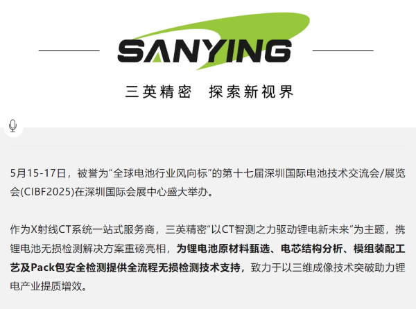 以CT智檢之力 驅(qū)動(dòng)鋰電新未來(lái) | 三英精密閃耀CIBF2025